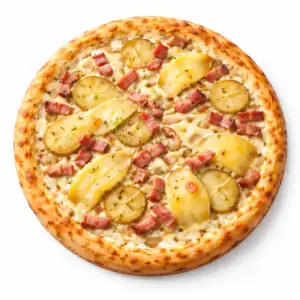 mozzarella, pommes de terre, lardons, fromage à raclette.